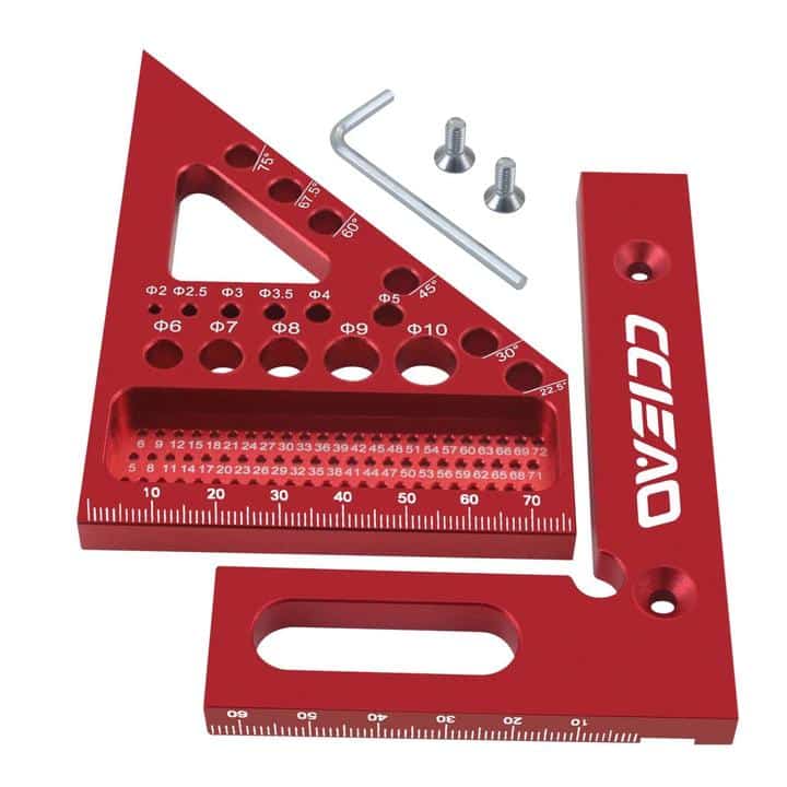 L’équerre à deux faces idéale pour simplifier le traçage manuel de vos pièces en bois. Avec ses dimensions de 112 x 79 x 85 mm, cet outil en alliage d’aluminium est à la fois léger et résistant.