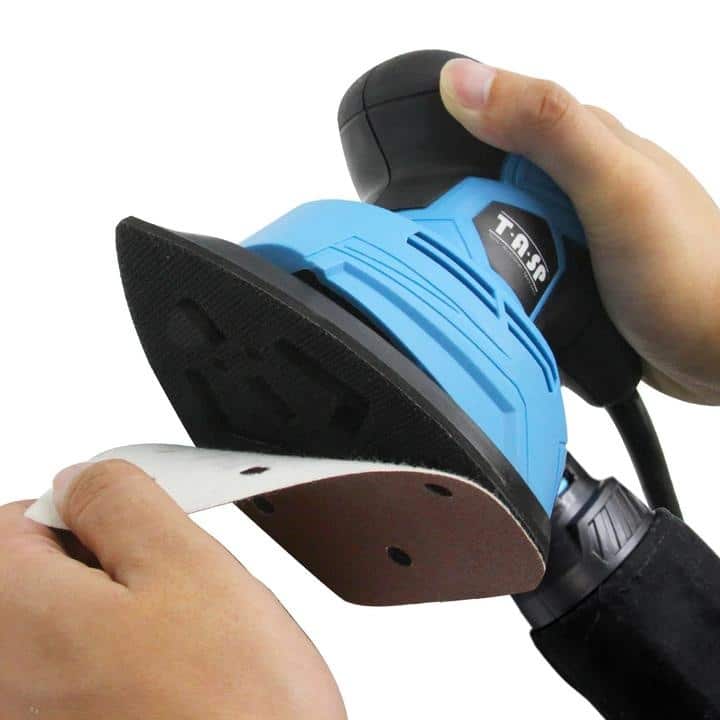 Avec ses 5 papiers de ponçage triangulaires de 140 × 100 mm, vous pouvez facilement les changer grâce au système de velcro courant sur la plupart des ponceuses du marché.